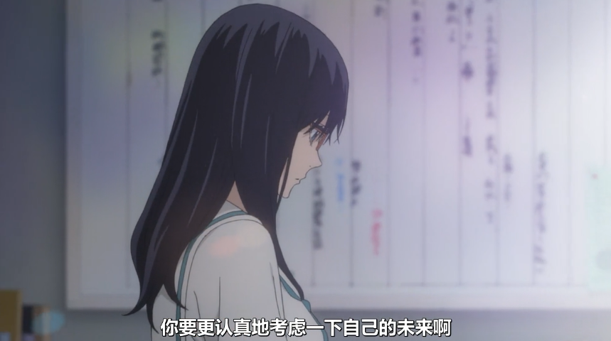 他在办公室里接受老师指导的时候,恰好看到本作的女主雫也在接受老师的指导,因为雫的学习成绩很优异,所以多多良也意识到学习好的人似乎也一样对未来有很多的未知与迷茫。