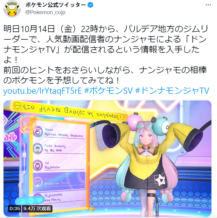 官推宣布,《宝可梦 朱/紫》将于北京时间10月14日晚21点公开新情报,此次将介绍奇树的搭档宝可梦。