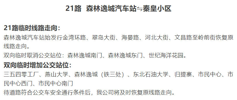 本市●因金湾环路东段施工断交,秦皇岛公交公司于7月11日起临时调整21路公交线路走向↓↓↓●秦皇岛市总工会发布节能降碳倡议↓↓↓