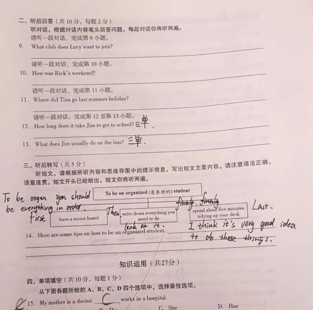 给亲们看一下,海淀初一期末英语统考试卷,满分100分,听力部分就占了27分。