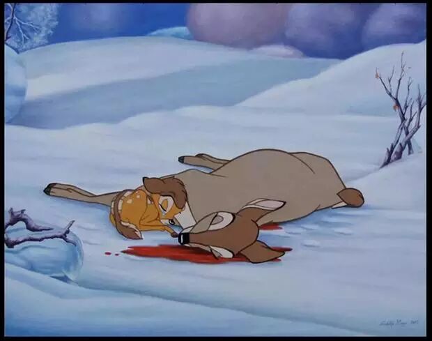 但也正是这一枪结束了斑比的童年,让他最终成长起来。无比残酷,无比真实。