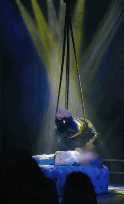 观众@爱吃鱼丸的熊体验的另一场猛男秀The Man Alive中,演员会挑观众上台进行婚礼互动,从求婚到结婚,各种高难度动作不在话下。