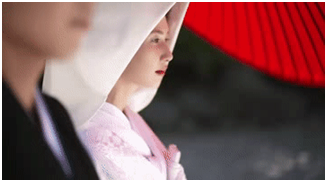 与中国所不同的一点是日本的婚服是白色,其实比起西洋日本更早将白色衣服运用到婚礼中去,因为日本从古代开始就把太阳光的颜色用“白色”形容,而白色的婚服融入了日本典雅雅致,又赋予了日本女性的独特魅力。