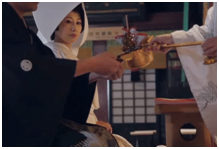 最后就是列席者全员喝神酒的仪式,新人双方的父母以及亲友都用酒杯饮用御神酒,和三三九度一样,要用三口喝完,代表着两个家庭从此结为亲家。