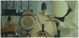 待司仪说完祝词之后,按神职人员、新人、媒人、亲属的顺序由巫女带领退出。