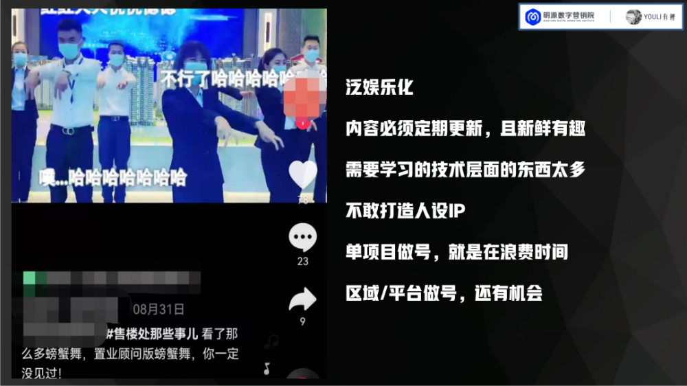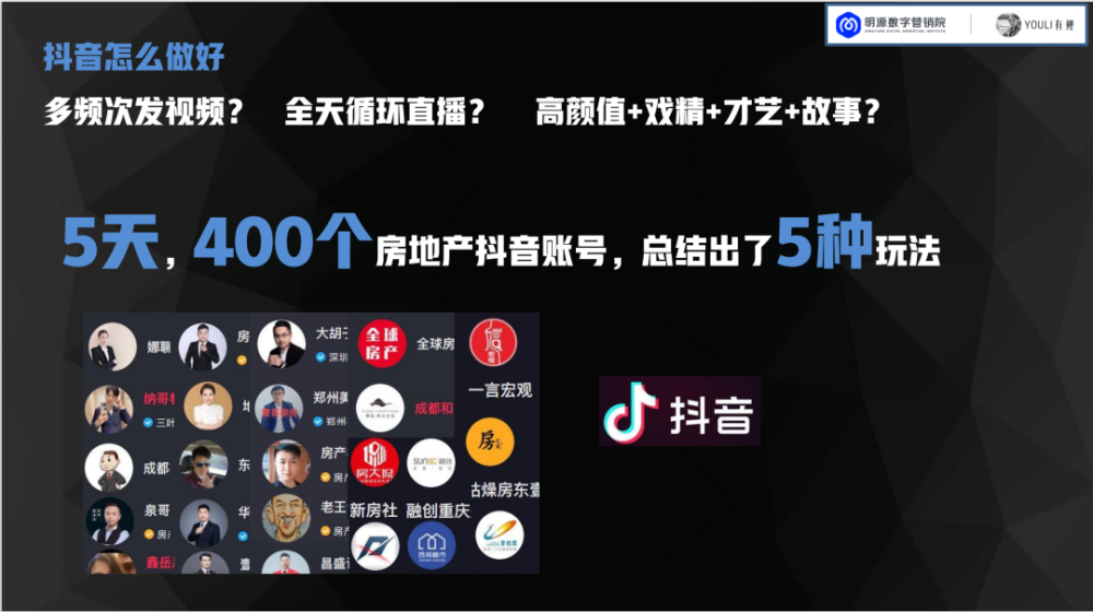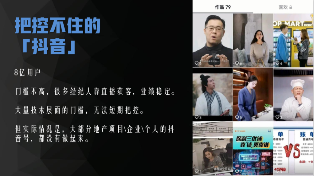 好,我们来说抖音,把控不住的抖音。地产营销人不会做抖音,为什么?