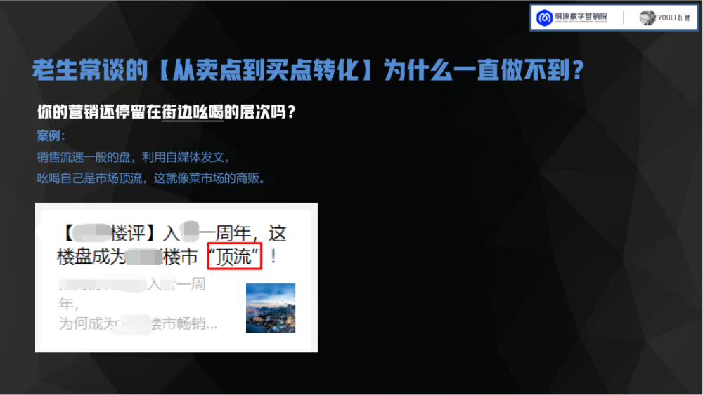 要不然就是你做了一些内容,置业顾问只停留在转发阶段,策划现在对线上营销的理解就基本上停留在各位营销总的要求和集团的要求上。