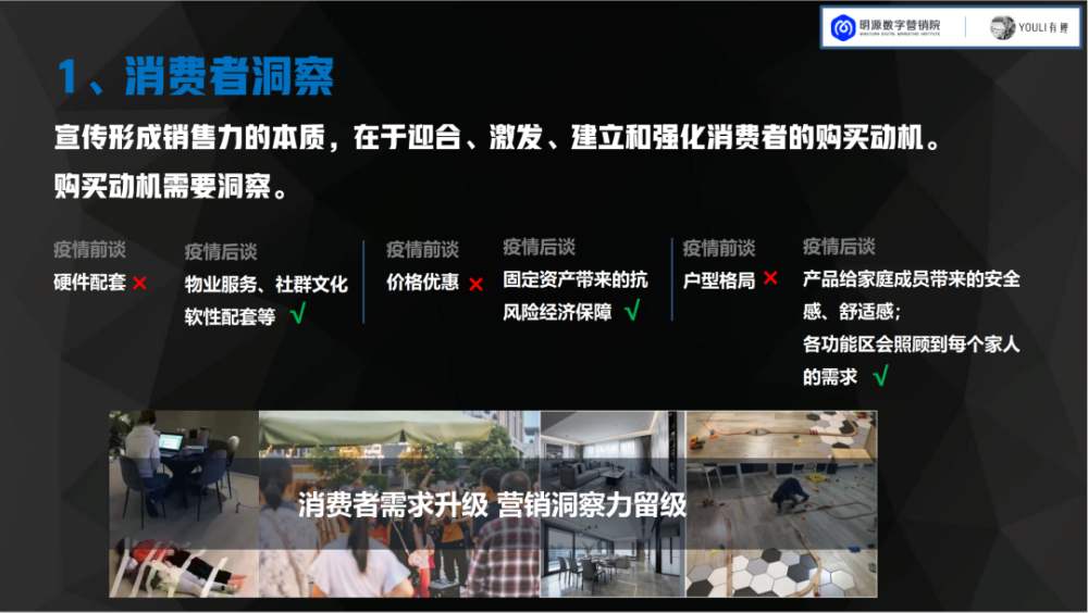 疫情之前,说开间进深层高,疫情之后聊产品能给客户家庭成员带来的安全感和舒适感。