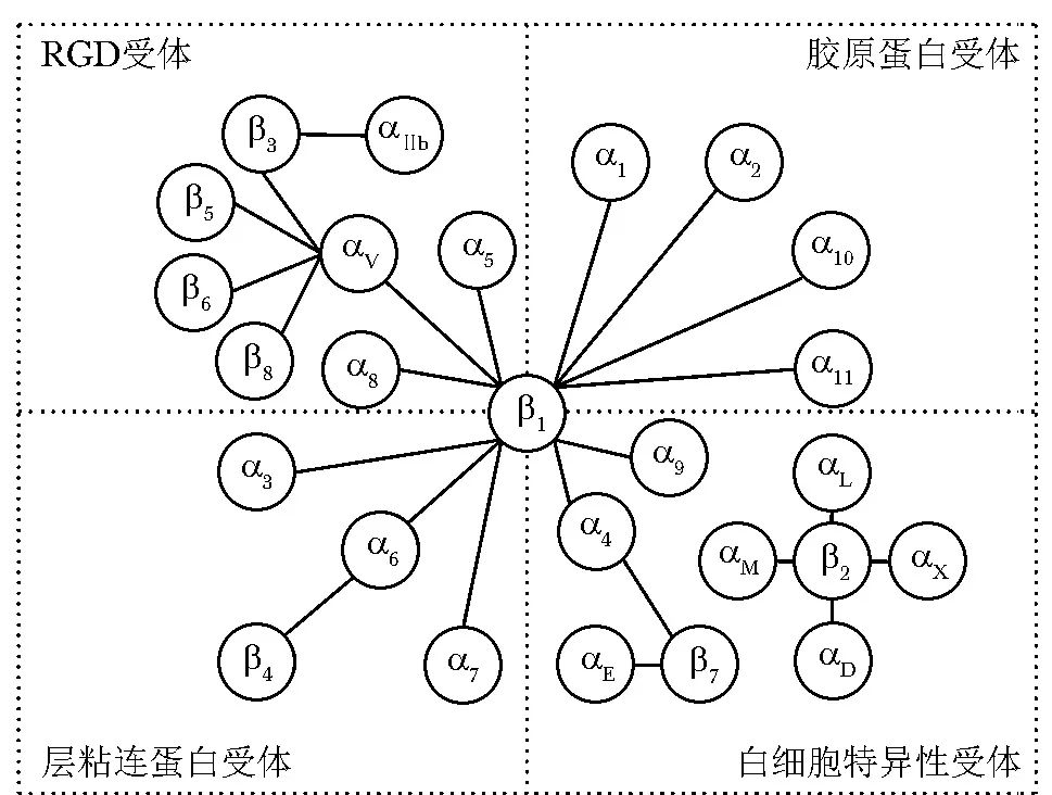 整合素受体家族的不同亚型各自负责不同的生理功能,在不同的病理状态下分别或同时表达异常。