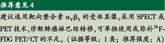 对于非小细胞肺癌淋巴结转移的判断,靶向整合素αvβ3的显像明显优于18F-FDG PET/CT,从而弥补了18F-FDG PET/CT在指导肺癌手术决策方面的明显不足[11,30]。