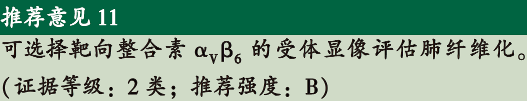 在肺纤维化过程中,整合素αvβ6亚型等高表达,因此靶向整合素αvβ6的显像剂用于评估肺纤维化获得了较好的效果[19,37]。
