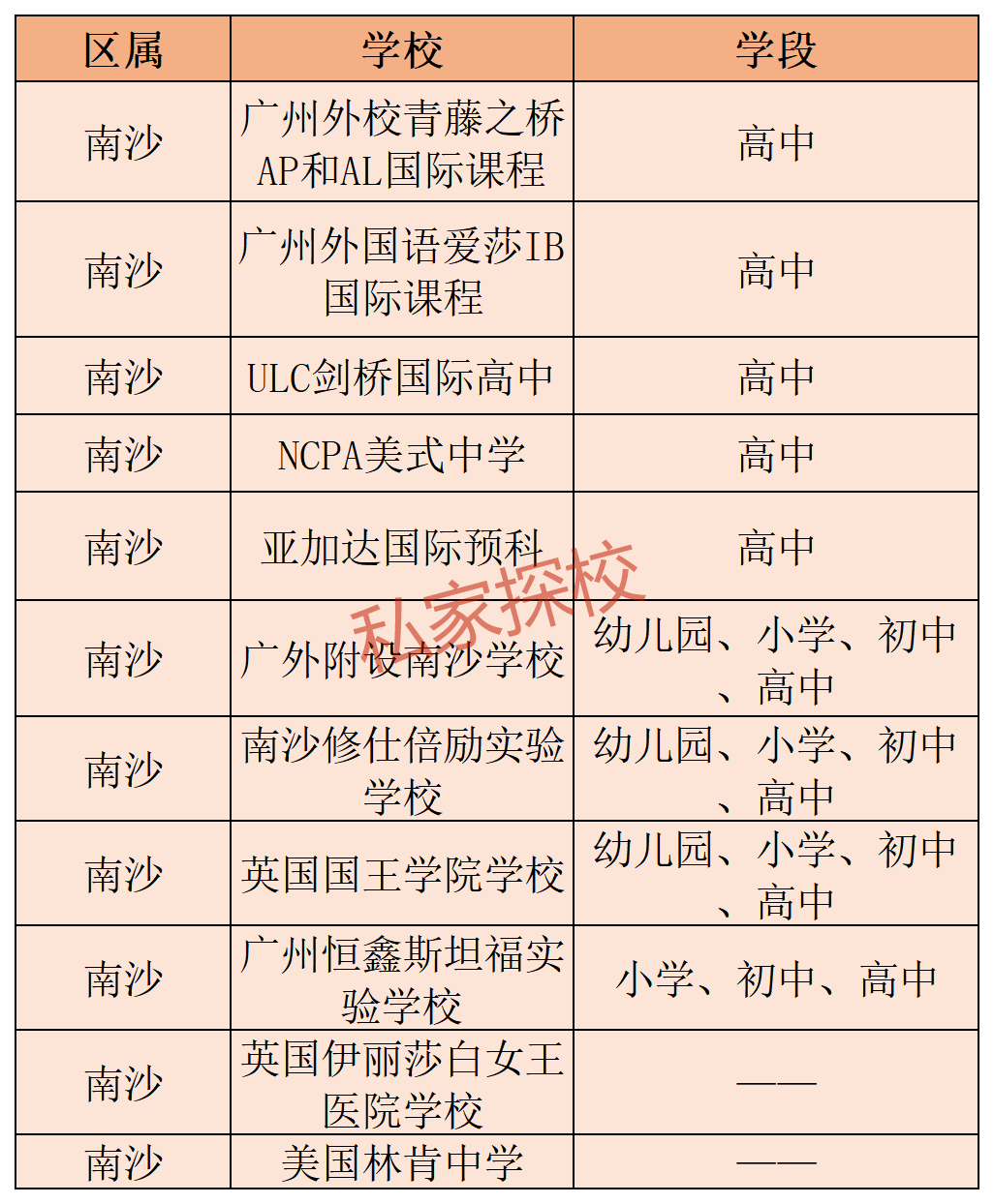 据不完全统计,目前南沙区一共有11所国际/双语学校。主要是以国际高中为主。