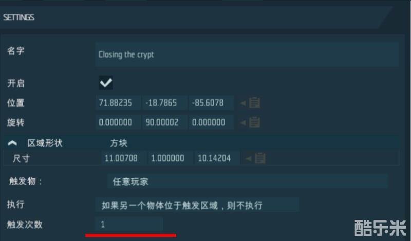 首先,玩家来到这个房间会触发第一个机关——更衣【触发区域】,该区域会让玩家装备上一身古埃及风格的服饰并将来时的路封死,同时将复活点设定在此房间中。