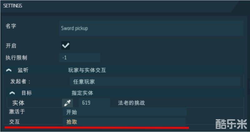 接下来,我们要做的是拾取面前的武器——法老的挑战,这会触发【事件监听器】,并触发以下过程: