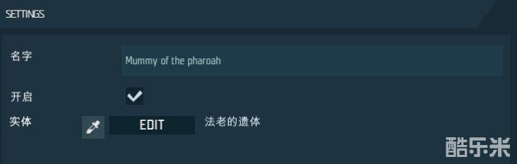 新生成的实体模板为事先设定好的法老木乃伊【实体模板】(设定方式与前文中的木乃伊相同):