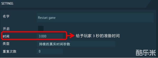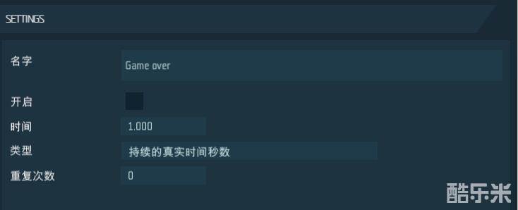 接下来是最后两个逻辑对象:结束游戏【时间触发器】与重启游戏【时间触发器】(此处用【时间触发器】是为了将结束与重启的逻辑时间延长,让观众不会产生突兀感)