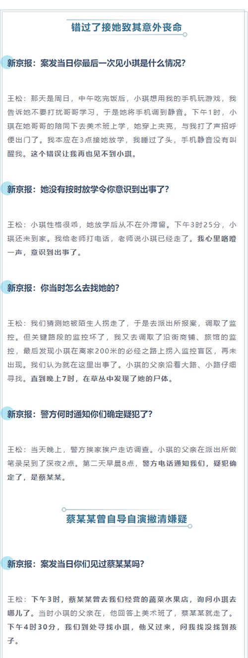 小琪的家属称,蔡某某的家处在监控盲区。家属称,警方告知他们,根据嫌疑人蔡某某供述,蔡某某将小琪叫进他家,15时30分,蔡某某将小琪抛尸于灌木丛中。