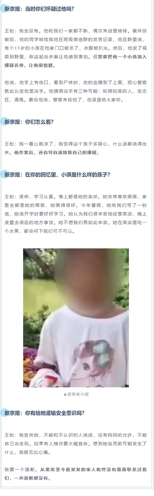 小琪的爷爷说,案发当日晚上7时左右,小琪的父亲发现了她的尸体。“我们调取了监控,发现小琪最后一次在画面中出现是15时20分。她与往常一样,从美术班放学归家,在离家200米的路口处拐弯,进入监控盲区,此后便失去了踪迹。”