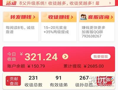 一个点击阅读量便是2.8元,一天10个浏览量便是28元了。只要你转发的文章内容有充足的诱惑力,那麼浏览量压根就并不是难题。