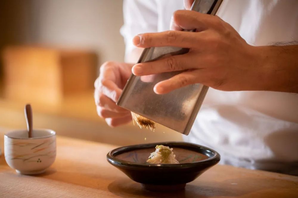一如专业寿司店的传统,鮨·青木的料理长会根据四季当造食材,确定当天的出品和菜单,而出品顺序则由师傅现场根据客人的情况决定。