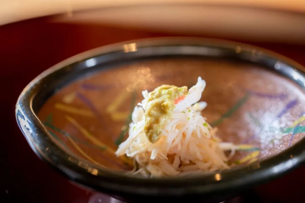 酒肴每天不同,是日师傅将来自兵库县的松叶蟹,蟹肉加上蟹膏,最后再添手刨一点点柚子皮做成松叶蟹酒肴,入口是蟹肉混合蟹膏的甜味,后味才是精彩之处,柚子皮帮助带出清新的感觉,层次分明。