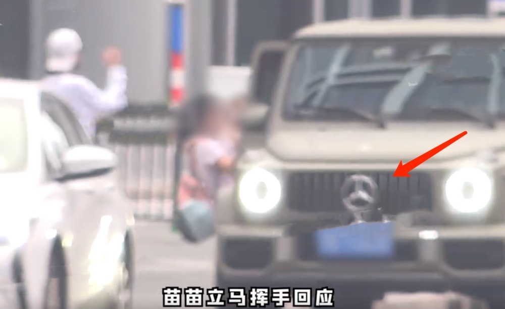 来接孩子的是一辆奔驰,保姆抱着苗苗的女儿准备上车,母女俩挥手道别,看起来依依不舍。