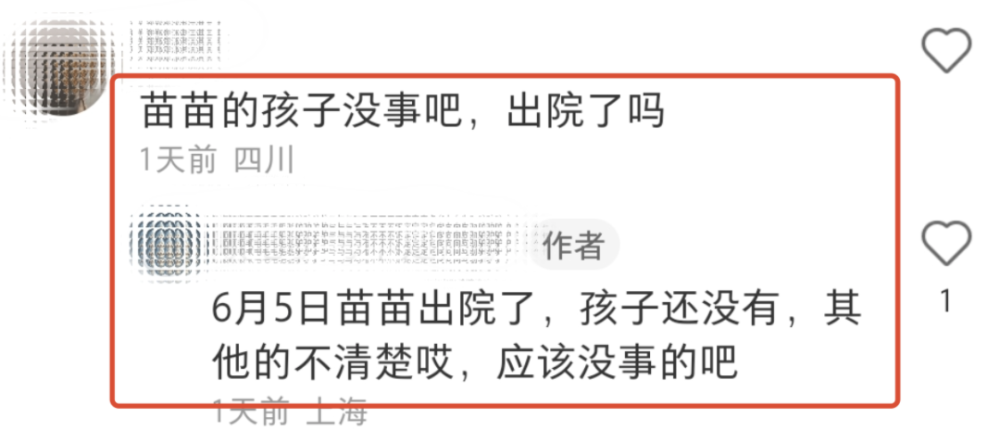 另一位网友则说苗苗是早产,这或许也就解释了为什么妈妈出院,孩子没有同行的原因,如果早产时间相差比较多的话,孩子是要放进保温箱的。