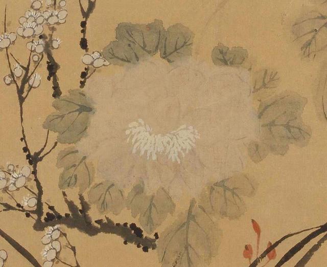 《春风香国图》中画梅、兰、竹、白牡丹四物。位“四君子”之列的梅、兰、竹是文人画中常见的题材,用以象征文人雅士的高洁品格,而牡丹则往往在宫廷绘画中出现,具有富丽华贵的贵族趣味。将两者集于一幅画面之中,这不能不说是汪士慎的一个创意。