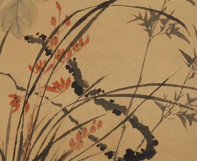 图中的墨笔与牡丹枝叶的绿色以及白色的花朵奠定了淡雅的冷色基调,红色的兰花是点睛之笔,使画面在清冷疏秀之中不乏生动活泼的韵致。汪士慎的花卉不仅具有人格化的品质,也是他清高孤傲、安贫守素的自身写照。