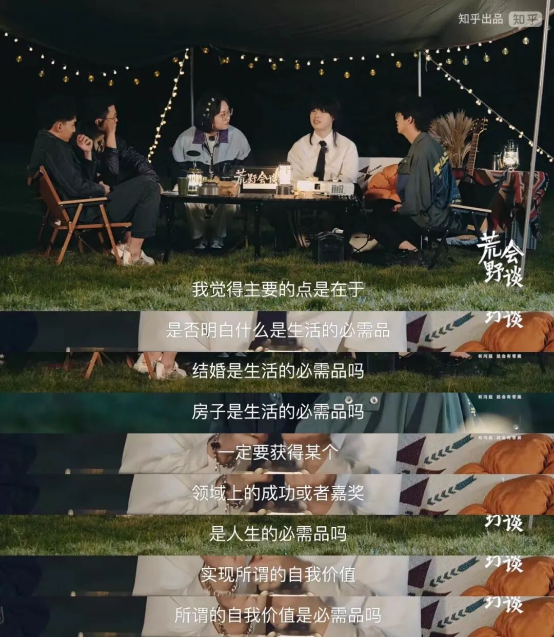 (外耗他人的发疯文学)中国的精神传统推崇人与世界的统一。老子所言“贵以身为天下,若可寄天下;爱以身为天下,若可托天下”正为我们描绘了这样一幅图景:个人与天下的圆融统一,可以帮助个人更好地委身于天下。这便从根本上消除了个人与外部世界之间的割裂感,解决了“疯”的问题。但是,对于生活在现代社会的年轻人来说,这一图景越来越难以抵达。从越来越难以在工作中找到自我的价值,到越来越难以找到合适的工作,在艰难的生存困境下要求年轻人与世界融为一体,是相当困难的。知乎最近推出的首档青年谈话节目《荒野会谈》也对年轻人的生命意义提出了讨论,“如果一个人注定是平庸和普通的,他的人生还值得一过吗?”“如何放掉追求崇高意义的执念?”这些问题都映射着当代年轻人面临的精神困境。对此,加缪的回答是“真正重要的并不在于如何活得更好,而在于尽可能地去经历”,在他眼中,尽可能地感受自我的反抗、自由和激情,就是值得过的生活。而在萨特眼中,恰恰是死亡定义了生命,生命的意义应该由人自己构建。