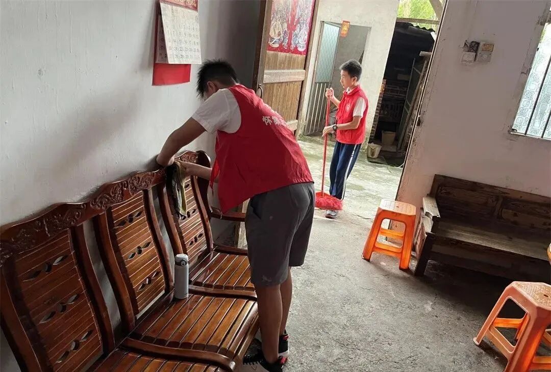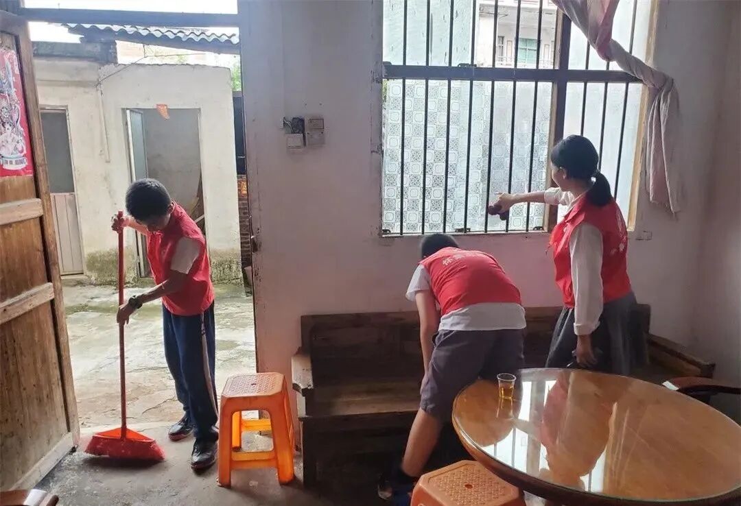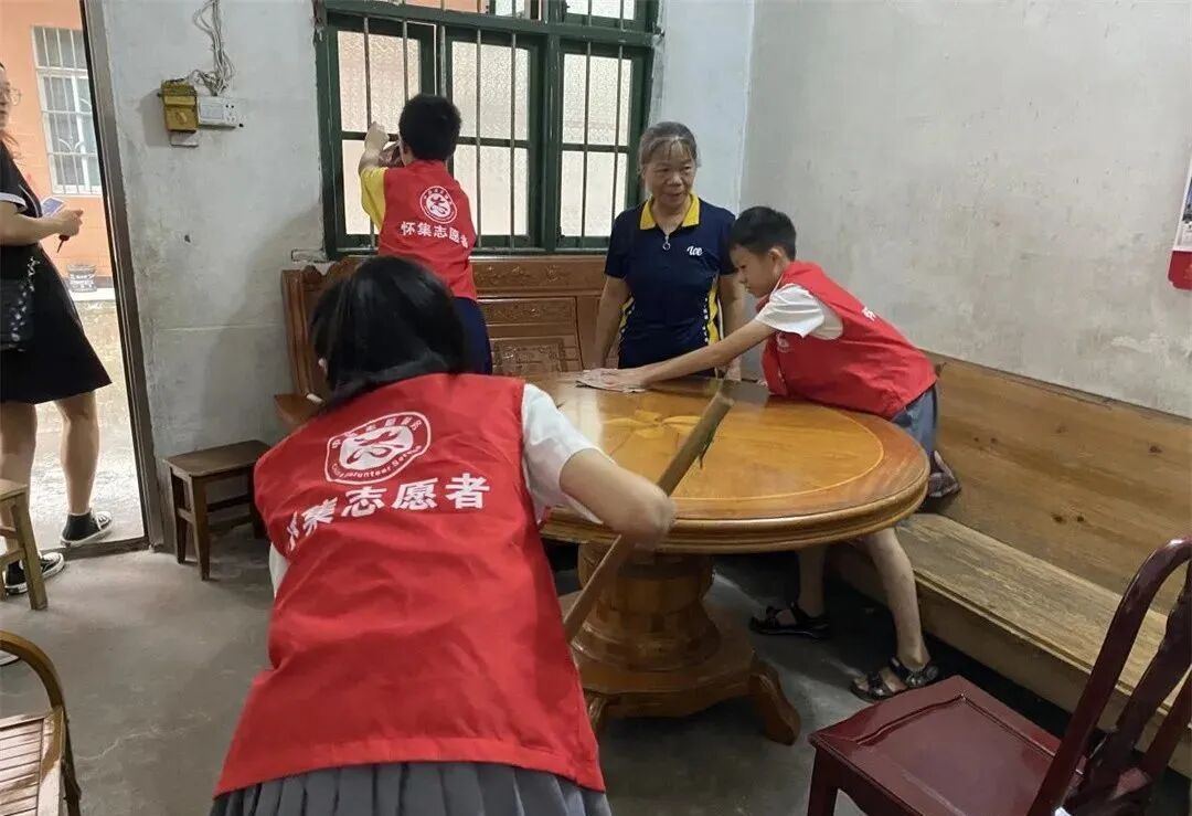 顶着炎炎烈日,志愿者们不惧酷暑,怀着一颗感恩的心前往社区困难、孤寡老人家中送去关爱和温暖。少先队员们个个精神饱满,热情高涨,来到老人们的居室内,纷纷帮助老人们打扫卫生,他们有的拿起抹布认真地擦窗户、擦桌子,有的拿着扫帚清理地面的卫生;有的坐下来与老人促膝交谈,听老人讲述自己年青的故事;有的为老人表演唱歌跳舞,逗得老人家哈哈大笑。现场气氛温馨,笑声不断。