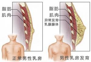 什么叫男性乳房女性化?医学上一般是这样说的:男性一侧或两侧乳房呈女性型发育,类似女性乳房那样膨大,有时有触痛或疼痛,也有乳汁样分泌物,称男性乳房女性化,或称男子女性型乳房。但是,在病理、组织学上,男性乳房发育与女性乳房不同,即无分泌乳汁的腺小叶,仅有乳管的增生和乳管的囊状扩张,同时有纤维脂肪组织的增生。