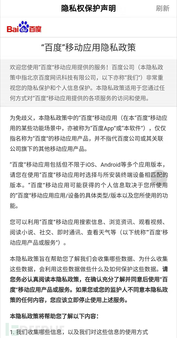 百度和微信的隐私政策: