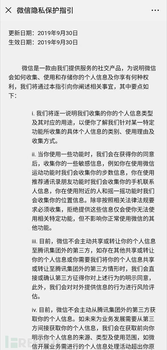 隐私政策还有一些内容,比如一些APP习惯单独说明cookie、Beacon等技术的说明,还有增加更新等发声明,这个并不是《个人信息保护规范》中的重点要求,这里不再展开了。