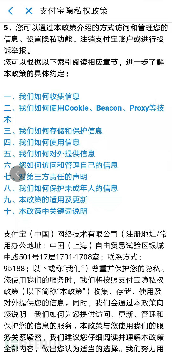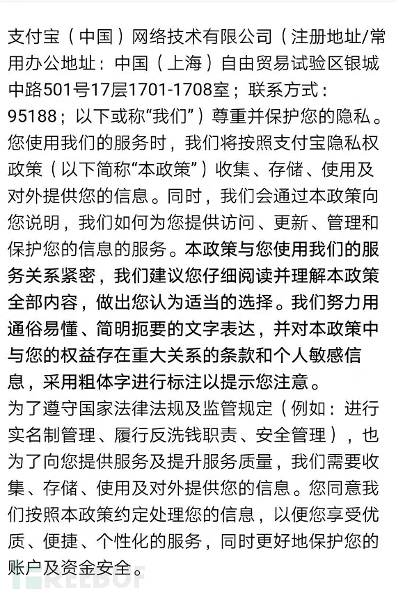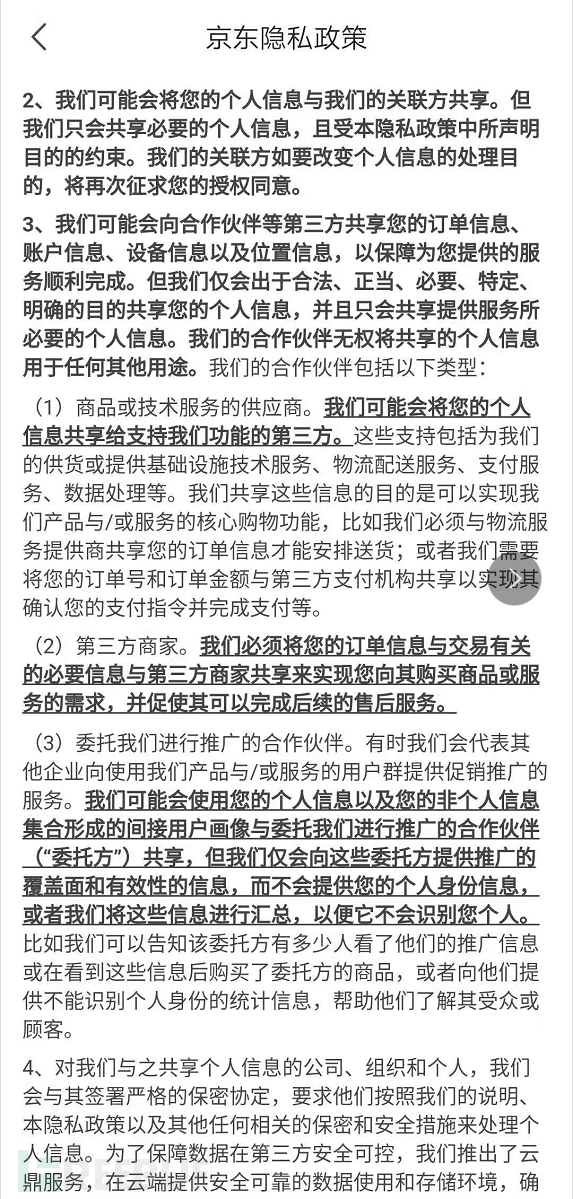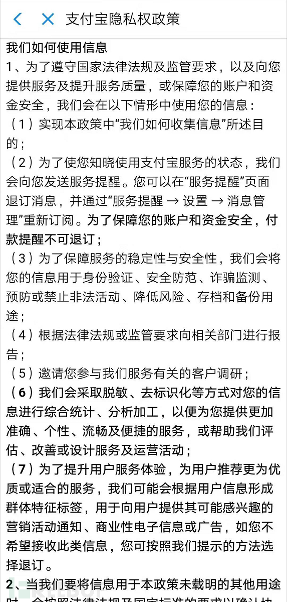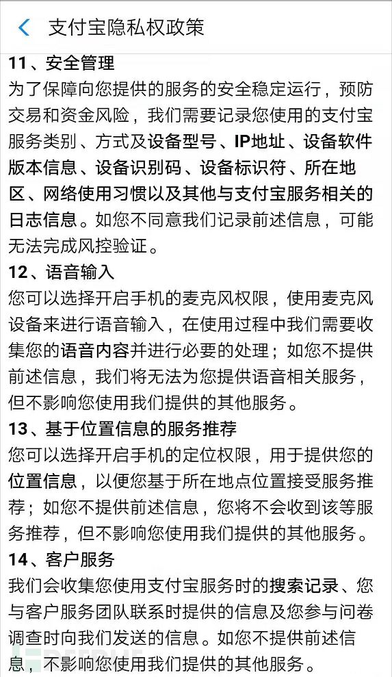 支付宝和京东隐私政策如下: