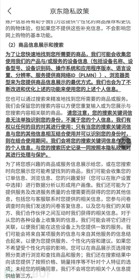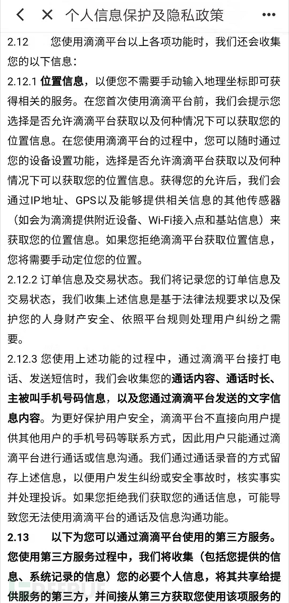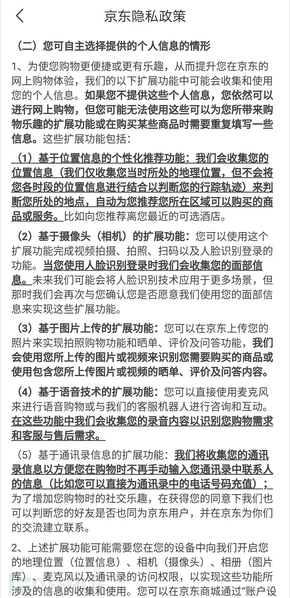 例如京东和滴滴隐私政策中通过单独的小节说明,可以明显看出系统功能类的隐私收集