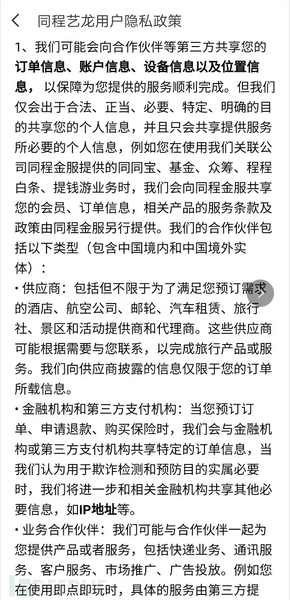例如,京东和同程旅游,第三方共享情况比较普遍,想订单型的APP的供应商是典型的场景。