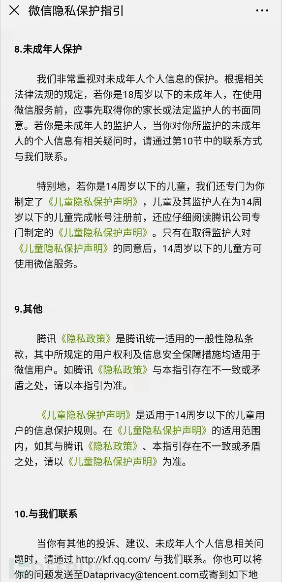 未成年人保护是18岁以下未成年人,可以在隐私政策中声明,主要原则是使用APP前必须征得监护人同意。14周岁以下的儿童保护条款一般需要单独声明,并能在隐私政策中引用。儿童保护需遵守《儿童个人信息网络保护规定》这里仅仅简单讨论,并不展开,实际编写时需和法务或律师沟通完成。