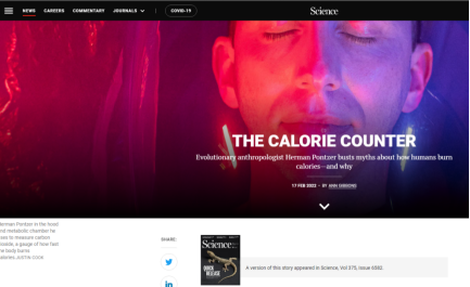 美国杜克大学Herman Pontzer(简称“Pontzer”)教授致力于探索人类的进化方式,研究人类和其他灵长类动物的生理学,进而了解生态、生活方式、饮食和进化史如何影响人类新陈代谢和健康。为此,Pontzer团队开展了遍访全球式的代谢研究,测算了坦桑尼亚的狩猎采集者、美国东海岸的城市居民、亚马逊的园艺家以及北美顶级马拉松运动员卡路里燃烧量,还将代谢科学的工具带出实验室,探索了人类远亲黑猩猩、倭黑猩猩、大猩猩和红毛猩猩的热量消耗情况。Pontzer团队的研究结果颠覆了人们对机体如何消耗卡路里以及运动和饮食如何影响新陈代谢和健康的理解。