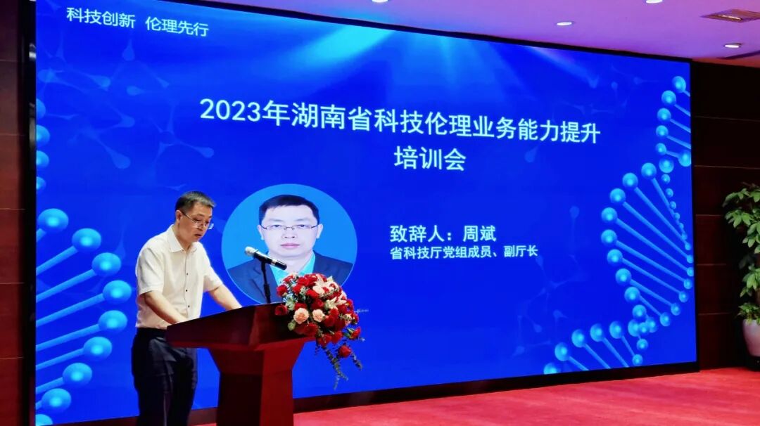 为深入贯彻党的二十大精神,落实中共中央办公厅、国务院办公厅《关于加强科技伦理治理的意见》和省科技伦理治理委员会第一次会议工作部署,7月6日至7日,全省科技伦理业务能力提升培训会在长沙召开。省科技厅党组成员、副厅长周斌出席会议并讲话。省科技厅科技监督与诚信建设处处长刘高、副处长曾霖霏,省科学技术信息研究所党委书记、所长、省区域科技伦理审查中心主任李贵龙,省科学技术信息研究所党委副书记、副所长、省区域科技伦理审查中心副主任匡建斌出席会议。