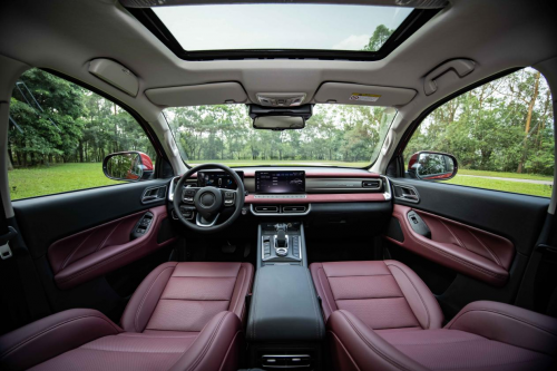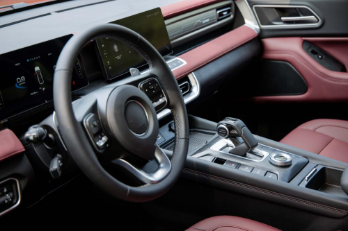 23款越野炮内饰全面焕新,彰显科技豪华。座舱采用大面积软质包覆,搭配威尼托红颜色,极具高级感;搭载12.3英寸智联触控屏,配备新一代车联网系统,支持语音交互,识别率高达97%,张张嘴即可完成导航、空调、车窗开闭等功能的操作,提升驾驶安全性、舒适性;真皮座椅具备通风等功能,在炎炎夏日为车内人员,营造舒心惬意的驾乘感受。
