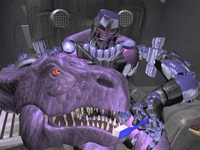 霸王龙偶然找到了坠落在海洋里的霸天虎战舰,报应号(Nemesis),并打算用它来毁灭汽车人的方舟。就在紧要的关头,巨无霸开着飞船撞击了报应号,霸王龙的算计又一次落了空。