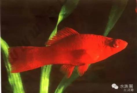 剑尾鱼又名剑鱼、青剑、花斑剑鱼,因该类雄鱼的尾鳍上都延伸有剑状物,故名“剑鱼”。雄鱼都较雌鱼体小。剑尾鱼是热带鱼中最受欢迎的品种之一,尤其是红色系品种。体纺锤形,头尖尾长。红剑鱼遍体通红,是水草缸中的调色者,俗话说“万绿丛中一点红”,正是它的写照。另外友性携长剑,雌性着圆裙(圆形尾),性别特征分明,也是其他鱼类少见的。该鱼多色系,杂交变异多端,杂交后代往往会出现一些令人兴奋的特色性状,使爱好此鱼的“发烧友”非常着迷。