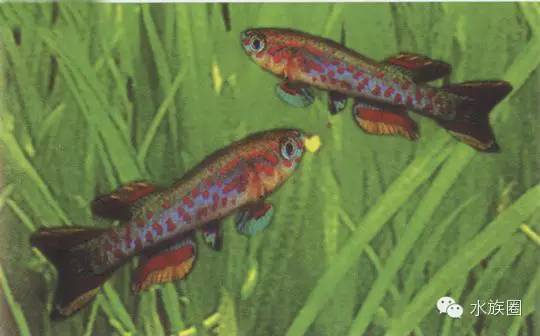 繁殖特点:雄鱼体较瘦长,鳍形较大,色泽艳丽;雌鱼体粗,腹部膨大。用体长4厘米左右的作亲鱼。