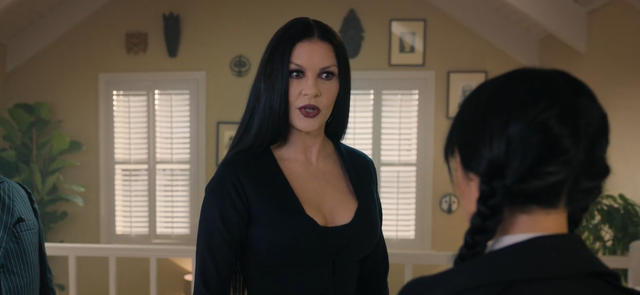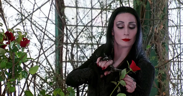 同时也十分的怪异,她会剪掉玫瑰花而留下带刺的茎,会在星期三追杀弟弟时给她递上大砍刀。