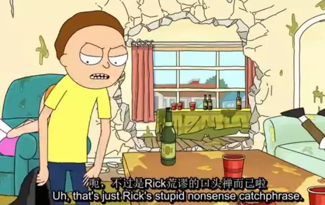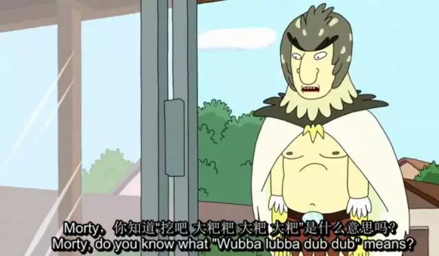 瑞克有一句口头禅,一句听上去毫无意义的口头禅,而且经常配合诙谐的动作说出。“Wubba lubba dub dub”。