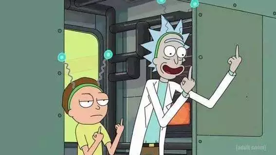 图为瑞克教授外星人竖中指是一种礼貌的行为,所以莫蒂跟着做
