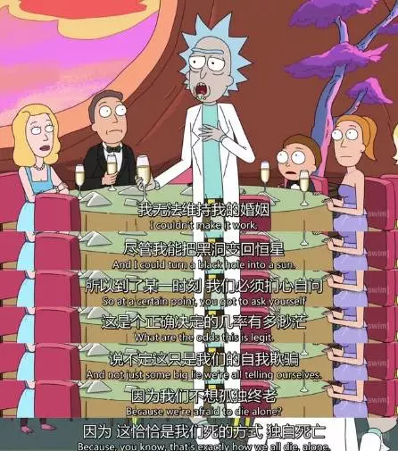 对的,但毒鸡汤只是一个基础,而《瑞克和莫蒂》结合科学的毒鸡汤,则是创新一个高度。不仅吐槽地球人,连带全宇宙的外星生物都不放过。