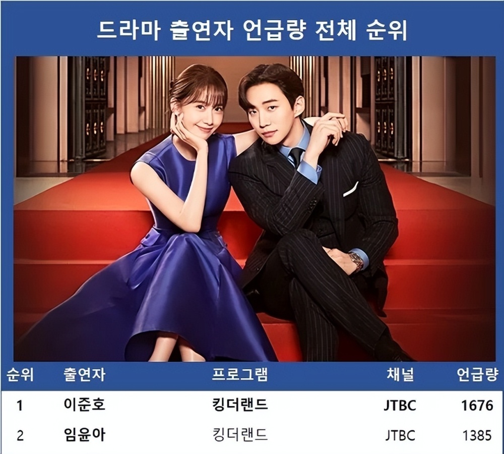 此外,靠着韩剧《欢迎来到王之国》中出色的表演,李俊浩和林允儿分别揽获了,7月第一周最佳话题演员的第一第二位,虽然该剧在刚刚开播时,让不少的韩国网友感觉剧情挺老套的,但是随着剧情的开展,收视率节节上升,意想不到的格外受欢迎。