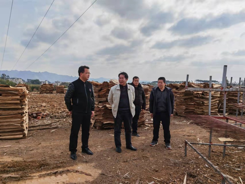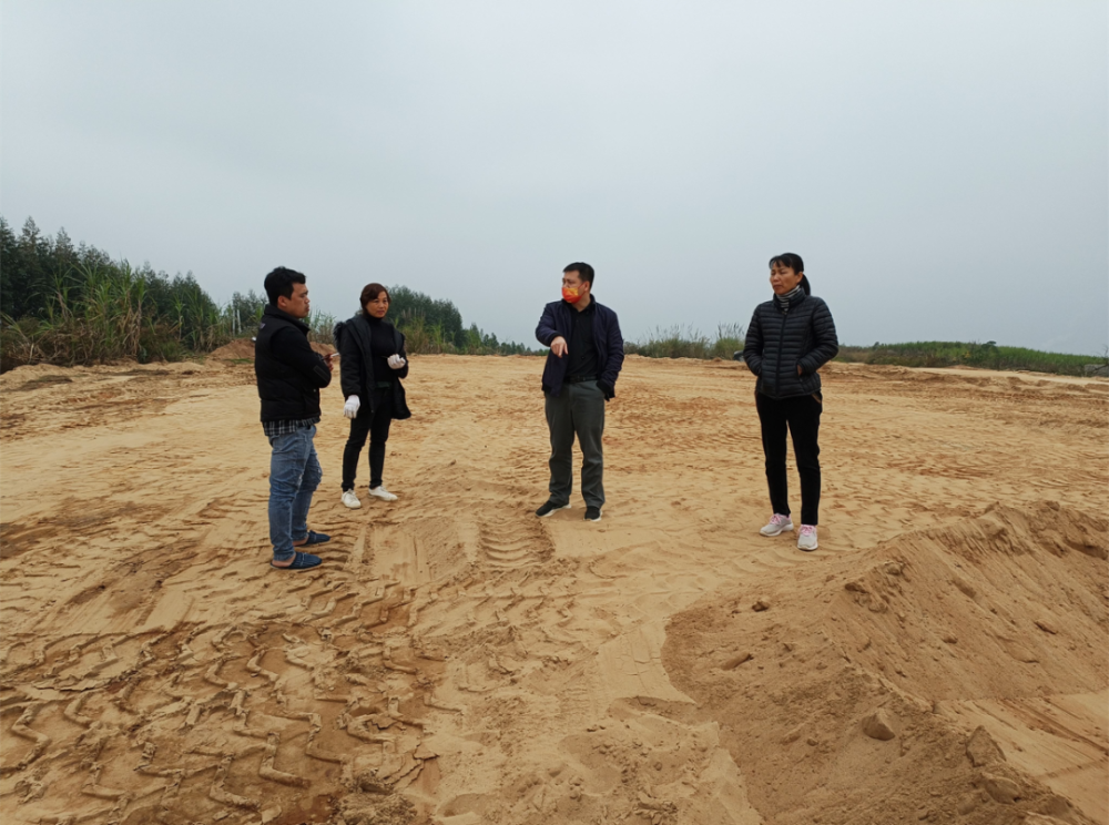 △图为滕龙威(右二)到产业大道指导开展卫片整改工作